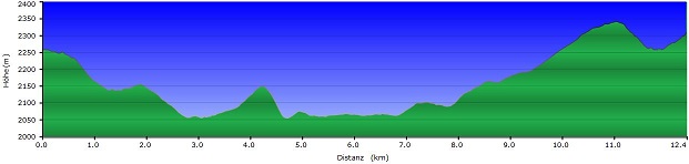 Gehzeit: 4:30 Std. Aufstieg: 850 m; Abstieg: 200 m
